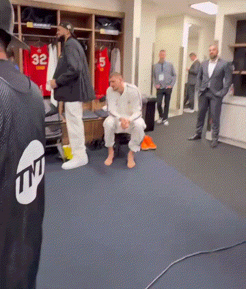在今年全明星赛前,作为队友的约基奇发现文班在更衣室的书时询问道:“你居然真的带了一本书?”文班轻松回答道“我每场比赛前都会阅读”,随后约基奇似乎想起了什么开心的事情后久久难掩笑容。